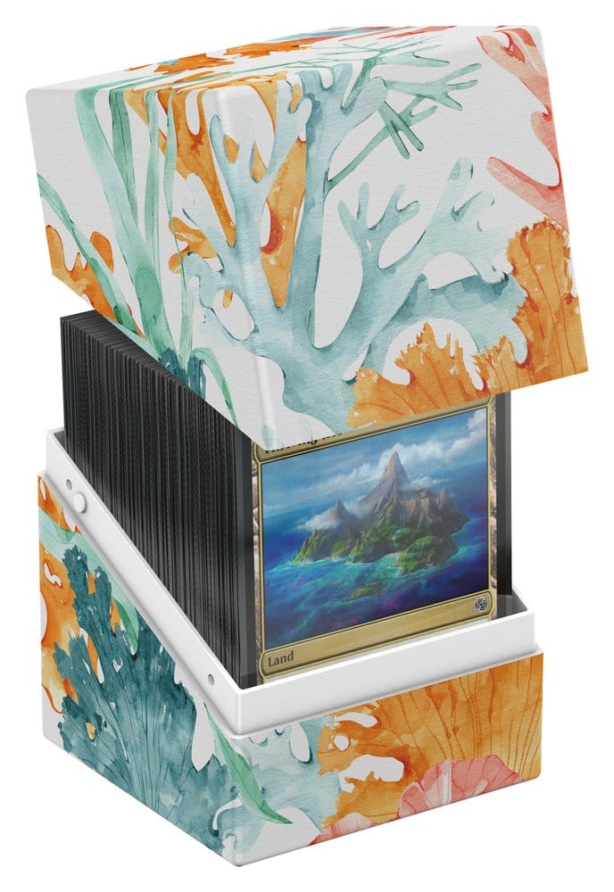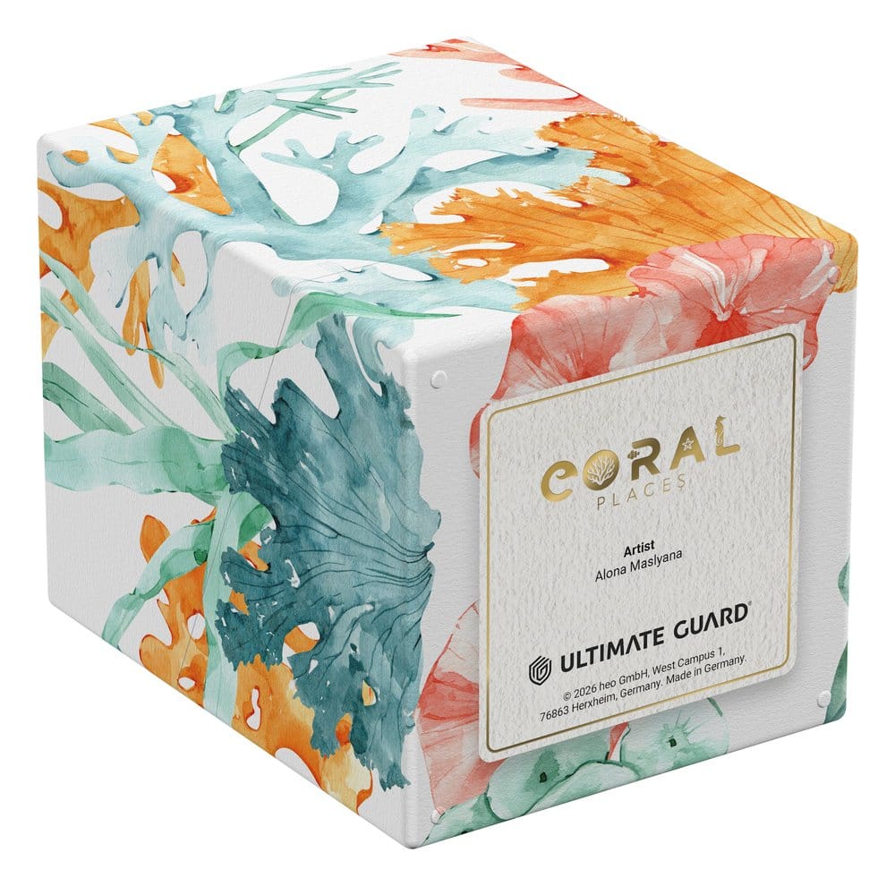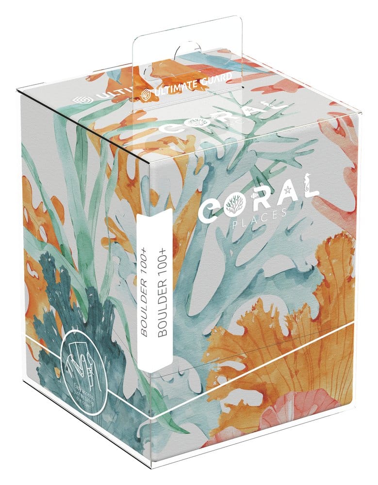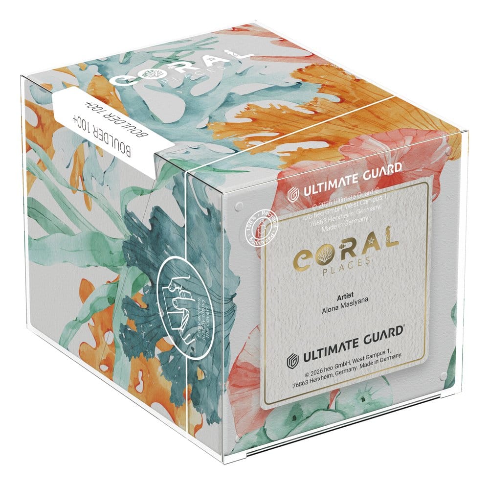 Ultimate Guard's RTE Boulder 100+ from the "Coral Places" series is a durable and reliable TCG deck box made in Germany from 78% renewable resources. Despite its secure closure, the RTE Boulder 100+ is easy and convenient to open and holds 100 double-sleeved cards in Ultimate Guard sleeves*, making it the ideal deck box for trading card games like Magic: The Gathering, Pokémon, Lorcana, Flesh and Blood, Yu-Gi-Oh!, Riftbound, or One Piece. The deck box features a vibrant, full-color print and comes in eco-friendly packaging made from 100% recycled and further recyclable materials. Designed to combine with all Ultimate Guard mass storage boxes, Boulders fit especially well into Arkhive, Superhive, and Flip'n'Tray boxes.