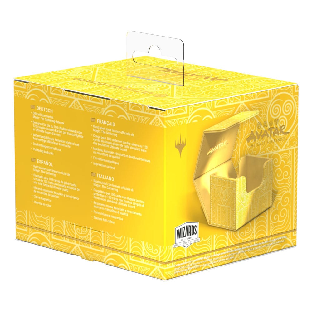 The Sidewinder 100+ made from durable Xenoskin material holds up to 100 double-sleeved cards, which are kept secure in the deck box thanks to a strong magnetic closure and soft microfiber inner lining. The durable, high-quality Xenoskin surface of the Sidewinder is printed in full color with officially licensed artwork from the Magic: The Gathering | Avatar: The Last Airbender set.