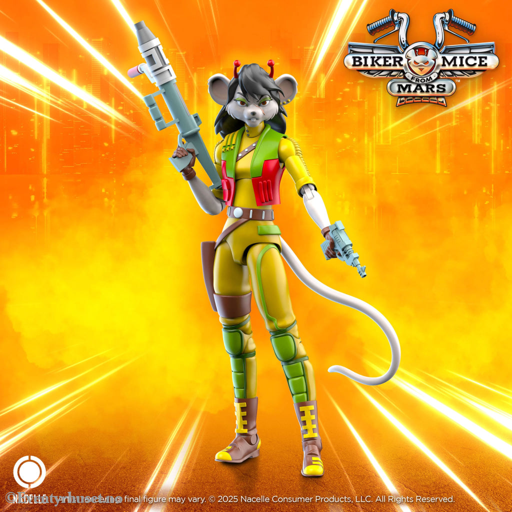 Carbine, the steadfast and resilient general of the Martian Army, leads the charge against the evil Plutarkian invaders. Despite working for the Martian Government, she is also a longtime ally of the Freedom Fighters and the Biker Mice, particularly Throttle with whom she shares a complex, on-and-off relationship. Whether it's through official or covert operations, her fierce loyalty to Mars drives her relentless pursuit to restore the planet's once-lush landscapes, where Martian Squirrel Bats grazed on vibrant pink seed plants in harmony.