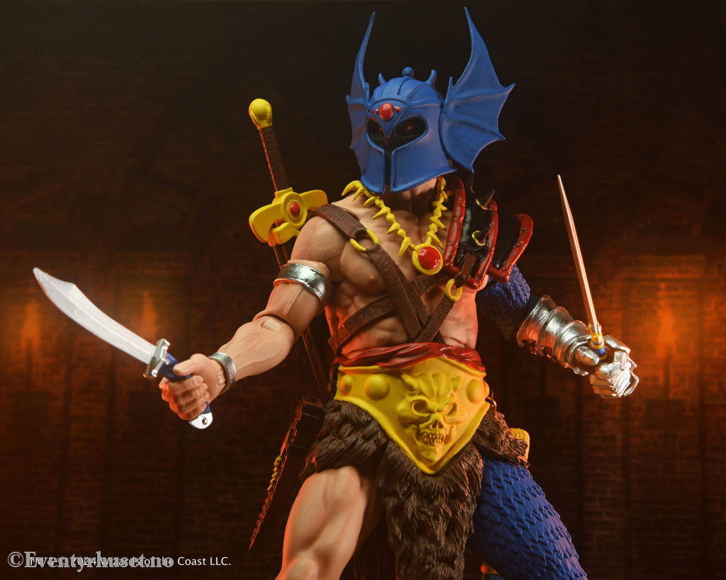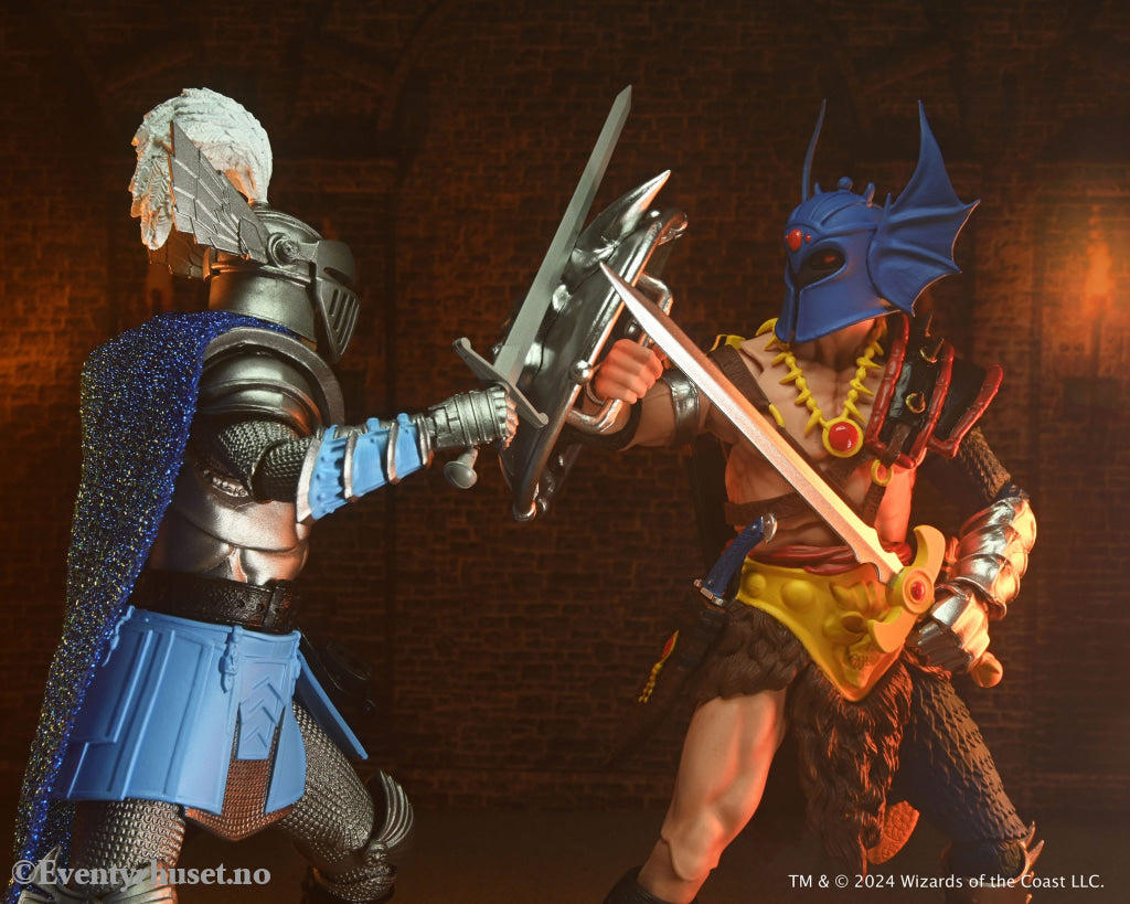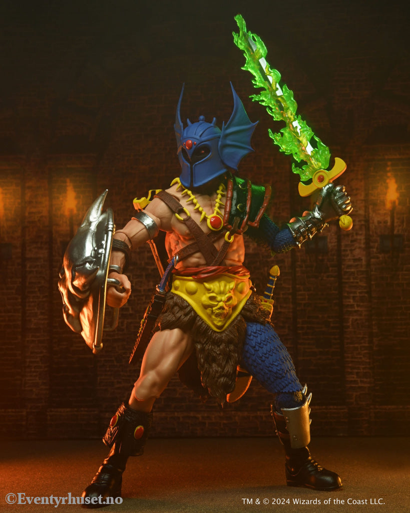 Celebrate the 50th anniversary of Dungeons & Dragons with NECA and WizKids! For this special occasion, we have reimagined the classic Warduke action figure release for the modern collector's market, with special touches to celebrate 50 years of D&D. Featuring a retro paint deco, evil mercenary Warduke fights for coin with a fearsome set of weapons - longsword with attachable flame effect, short sword, dagger, and skull shield. This 50th Anniversary Warduke action figure comes on blister card packaging that is a tribute to the original release.