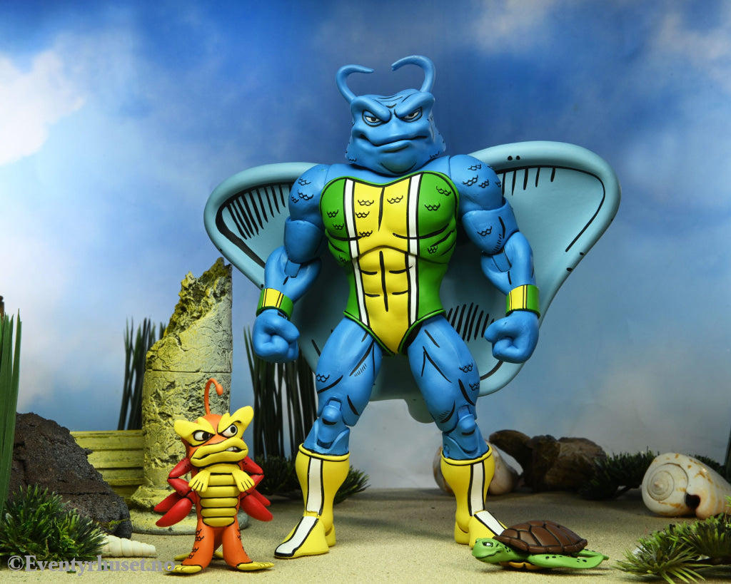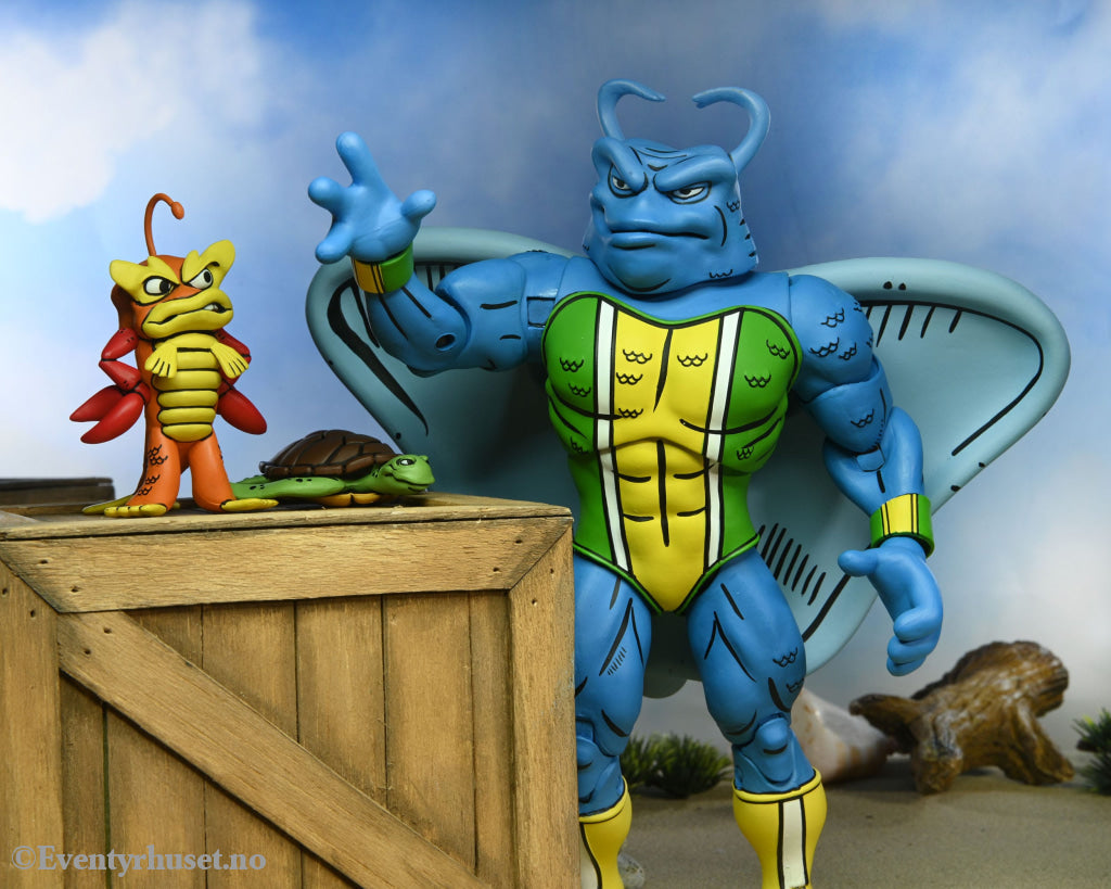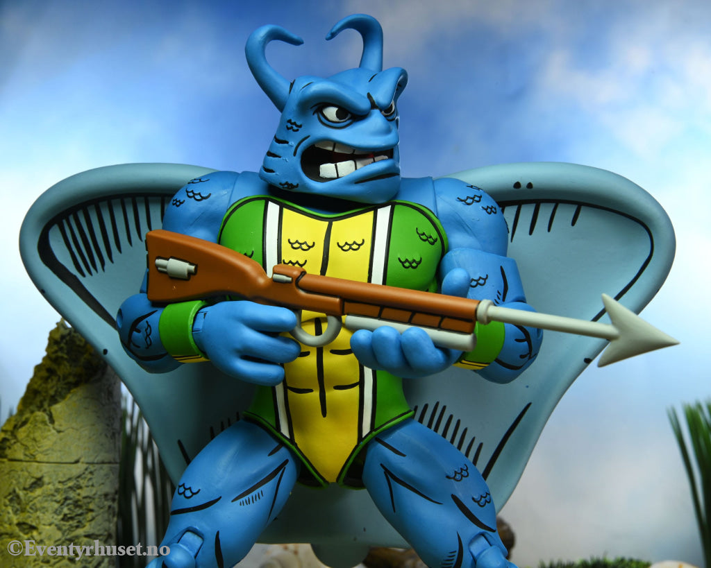 This new action figure from NECA is based on Eastman and Laird's Teenage Mutant Ninja Turtles Adventures comic book series from Archie Comics! Hero of the deep and fishy friend to the Turtles -- the Mighty Mutanimal Man Ray and his lil chum Bubbla are here to save the oceans! This 7" scale figure is detailed as depicted in the comics, and includes extra head, extra hands, harpoon, and sea turtle. Comes in collector-friendly window box packaging featuring all new illustrations by comic book artists Ken Mitchroney and Gary Fields.