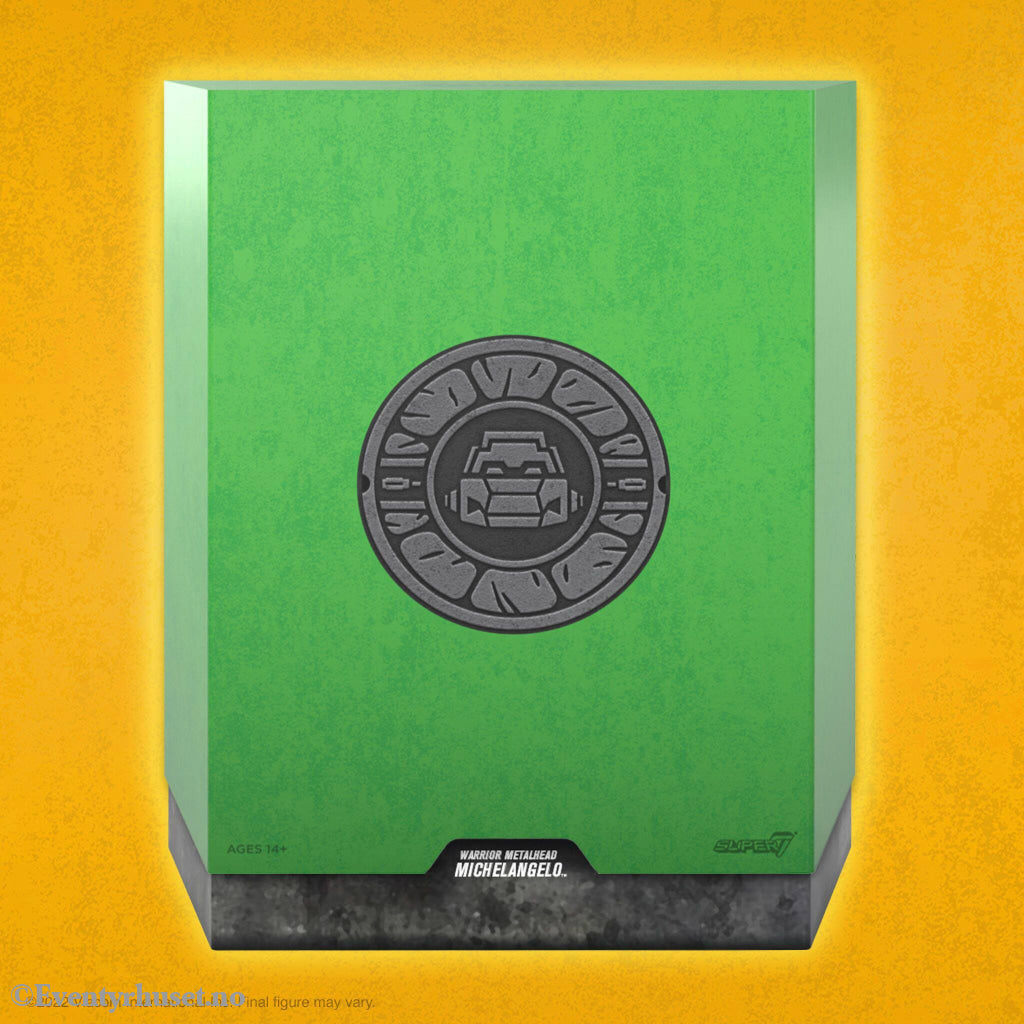 This highly articulated 7" scale Mighty Morphin Power Rangers Warrior Metalhead Michelangelo is a totally tubular, technologically-terrific teenage turtle trooper! This 7" scale highly articulated Teenage Mutant Ninja Turtles ULTIMATES! figure of Warrior Metalhead Michelangelo features high-gloss metallic paint detail and intricate sculpting, and comes with interchangeable heads & hands as well as an assortment of accessories including real metal chain nunchuks, Radical Robo-Chuks, and Portable Party Pack. Give your Ninja Turtles collection the bleeding-edge technological upgrade it deserves and get the made-to-order Teenage Mutant Ninja Turtles ULTIMATES! Warrior Metalhead Michelangelo figure!