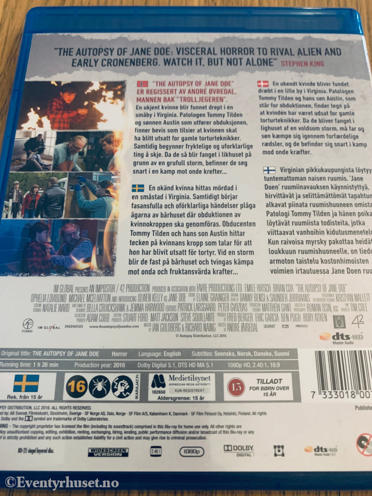 The Autopsy of Jane Doe (2016). Blu-Ray.