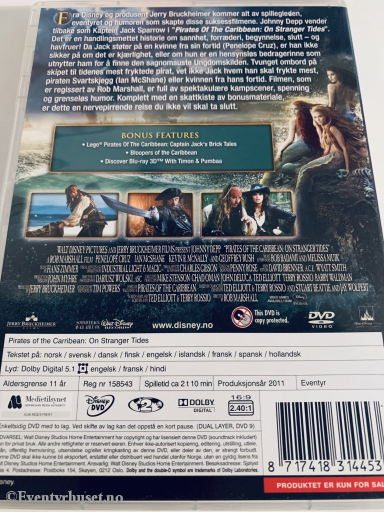 Pirates Of The Caribbean: Om Stranger Tides. Disney Dvd. Dvd