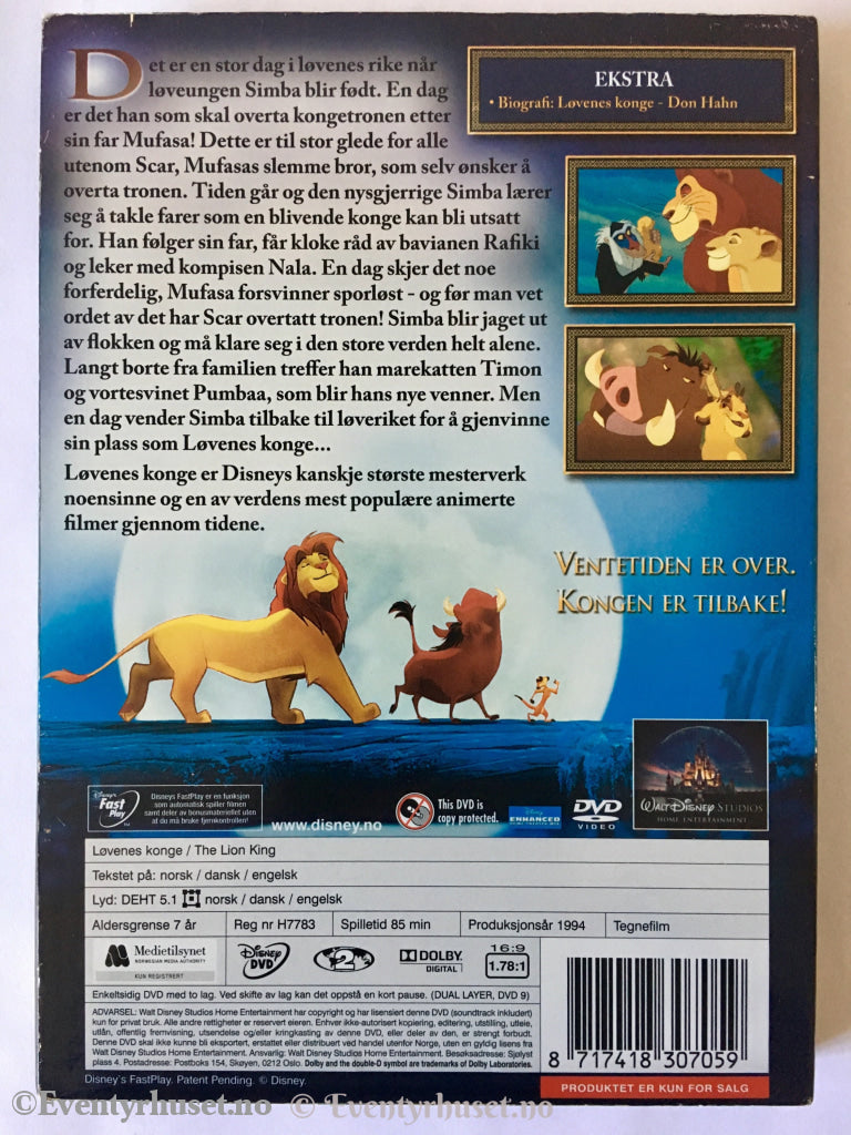 Disney Dvd Gullnummer 32. Løvenes Konge. (Diamond Edition)