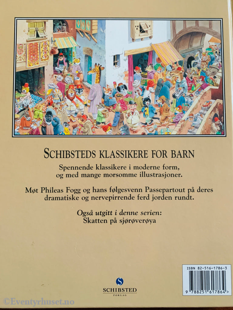 Barneutgave av Jules Vernes klassiker, illustrert av Tony Wolf. Historien om Phileas Fogg og hans eventyrlige reise jorden rundt på 80 dager, her med dyrefigurer og humoristisk vri.