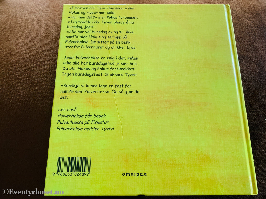 Pulverheksa inviterer alle sine venner til bursdagsfeiring, men som alltid blir det kaos og moro i Pulverskogen. En norsk barnebokfavoritt.