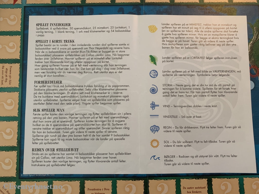 Utforsk spenningen og eventyret med Kon-Tiki spillet fra 2004! Dette brettspillet tar deg med på en utrolig reise gjennom Stillehavet, inspirert av den legendariske Thor Heyerdahls ekspedisjon.