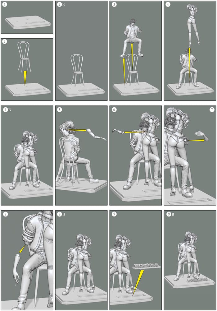 Sitting on the wooden chair recreated from the ending sequence, his right arm can be displayed either with his usual cigarette (removable) or with his faithfull Jericho. An additional Jericho and a set of red roses are included for a more personalized display.