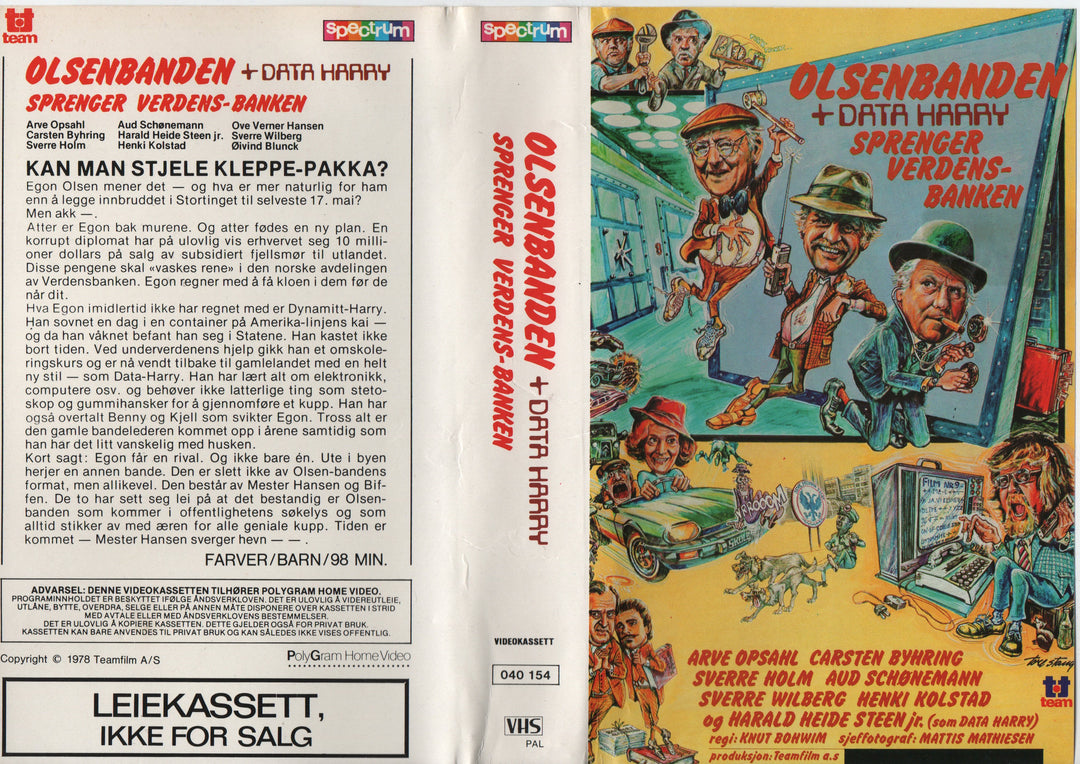 Download / Stream: Olsenbanden. Vol. 9. Olsenbanden og Dynamitt-Harry sprenger verdensbanken. 1978. VHS Big Box. Norwegian.