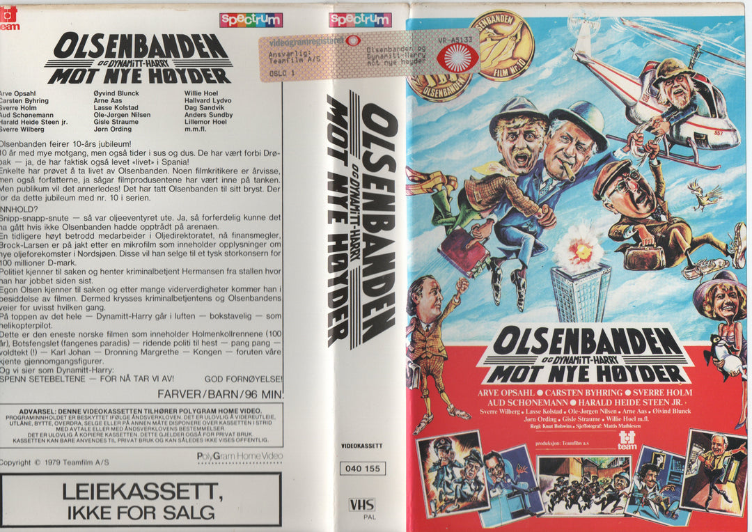 Download / Stream: Olsenbanden. Vol. 10. Olsenbanden og Dynamitt-Harry mot nye høyder. 1979. VHS Big Box. Norwegian.
