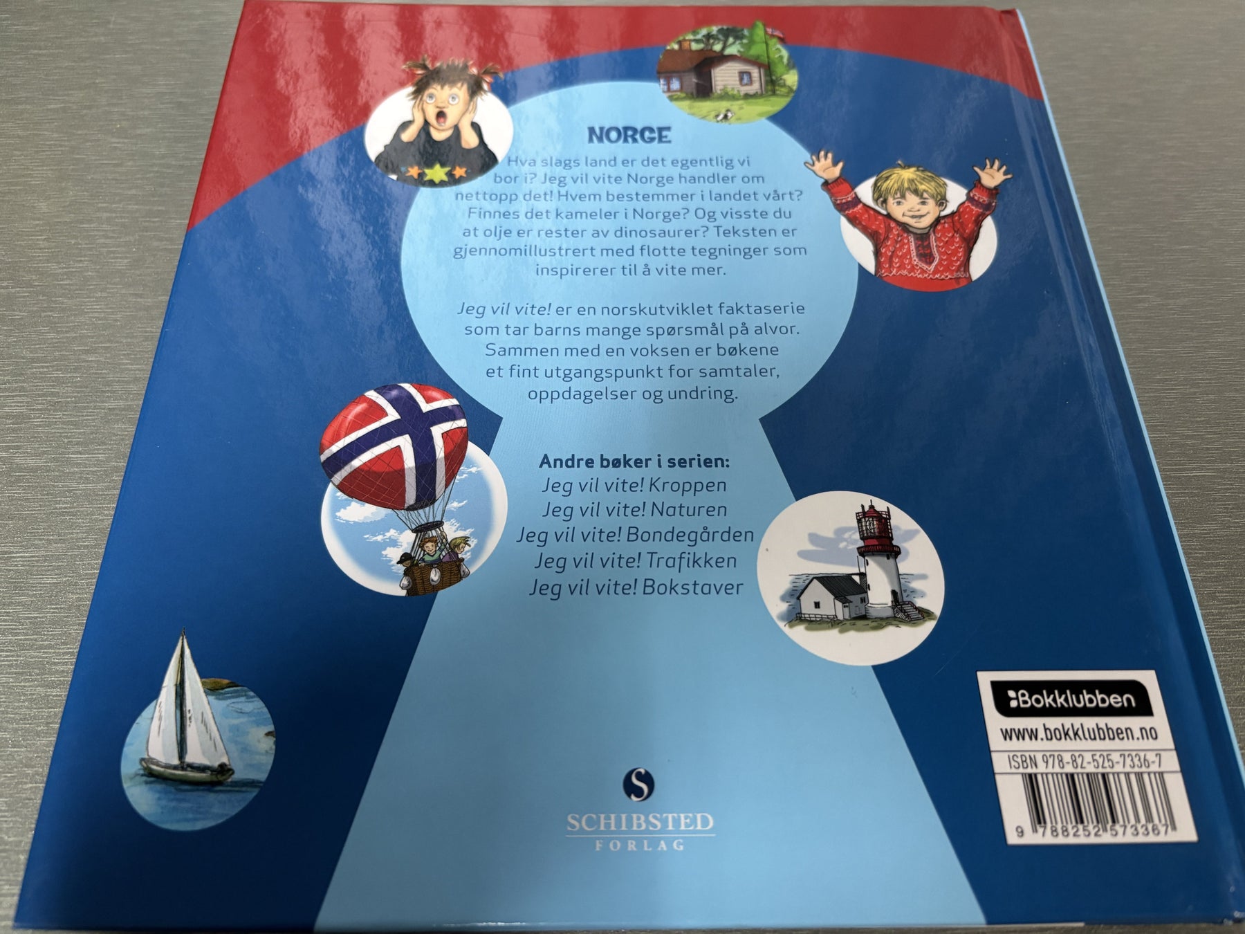 En faktabok for barn i serien "Jeg vil vite!", som tar for seg norsk geografi, kultur og natur på en pedagogisk måte.