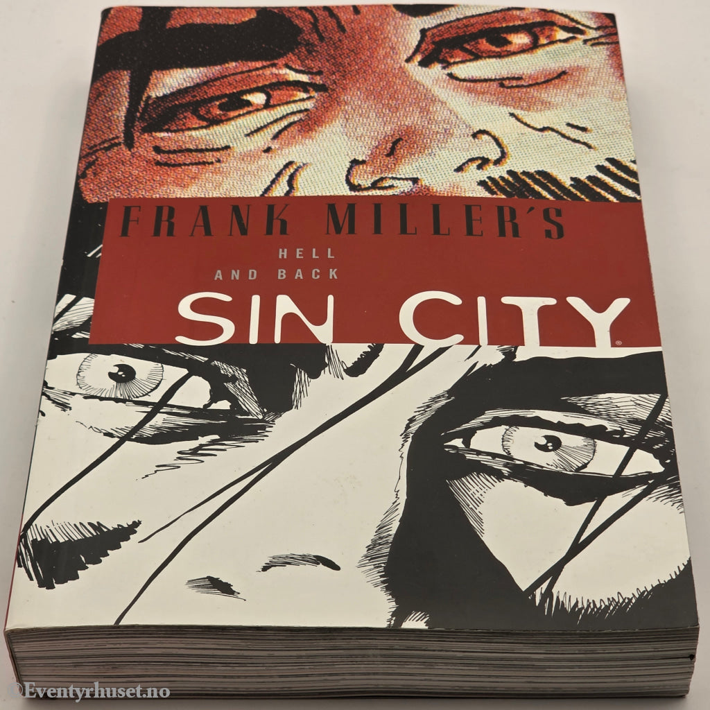 Baksiden av den grafiske romanen som viser Chip Kidds design og Frank Millers ikoniske svarthvitt-illustrasjoner.