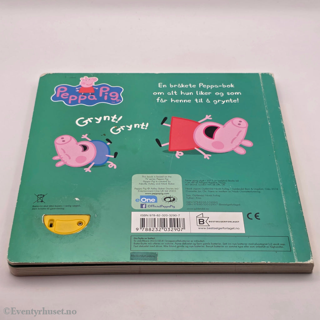 En interaktiv lydbok for små barn der man kan trykke på en knapp for å høre Peppa Gris og familien lage lyder.