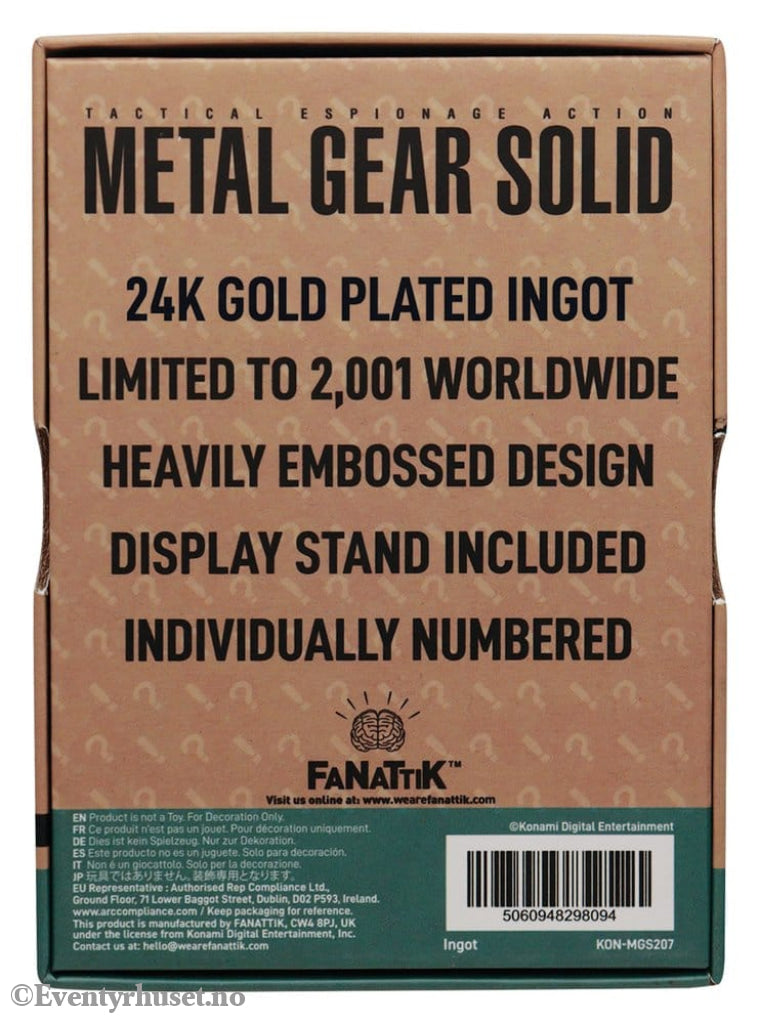 Metal Gear Solid 2 Ingot Snake 24k Gold Plated Limited Edition Collectibles