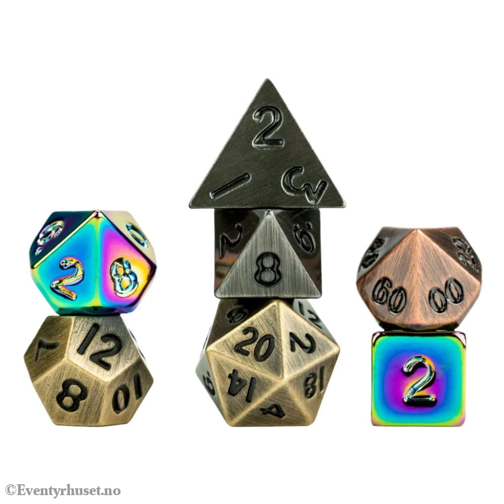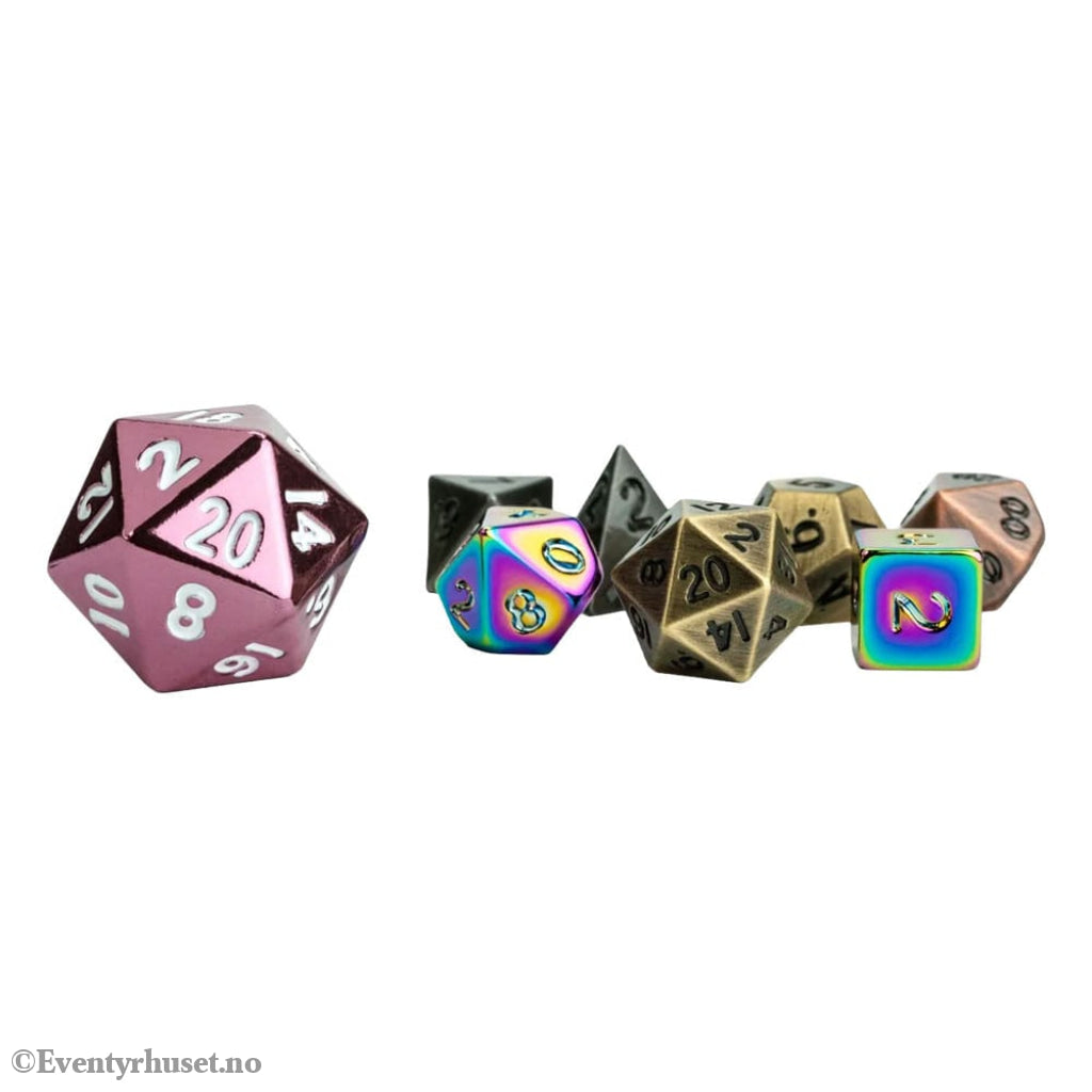 Small in size, but mighty in presence-our Mystery Misfit Mini Metal Polyhedral Dice Sets pack serious weight into a pocket-sized package. Each full 7-piece mismatched set is cast in solid metal, delivering that satisfying heft and resonance players love, but scaled down to a compact mini size for easy carrying and fast rolling. As part of the "Mystery Misfit" line, every set is a surprise.