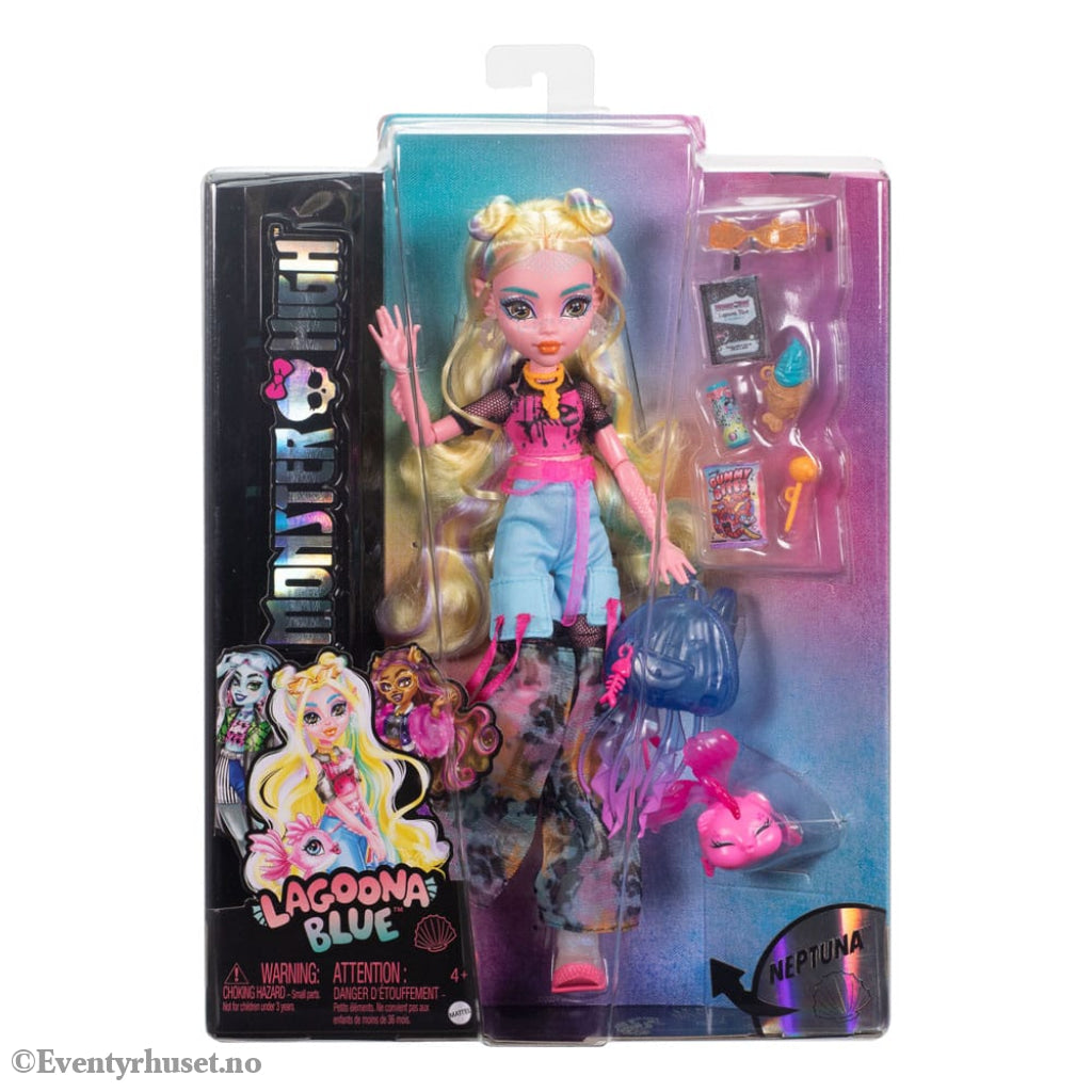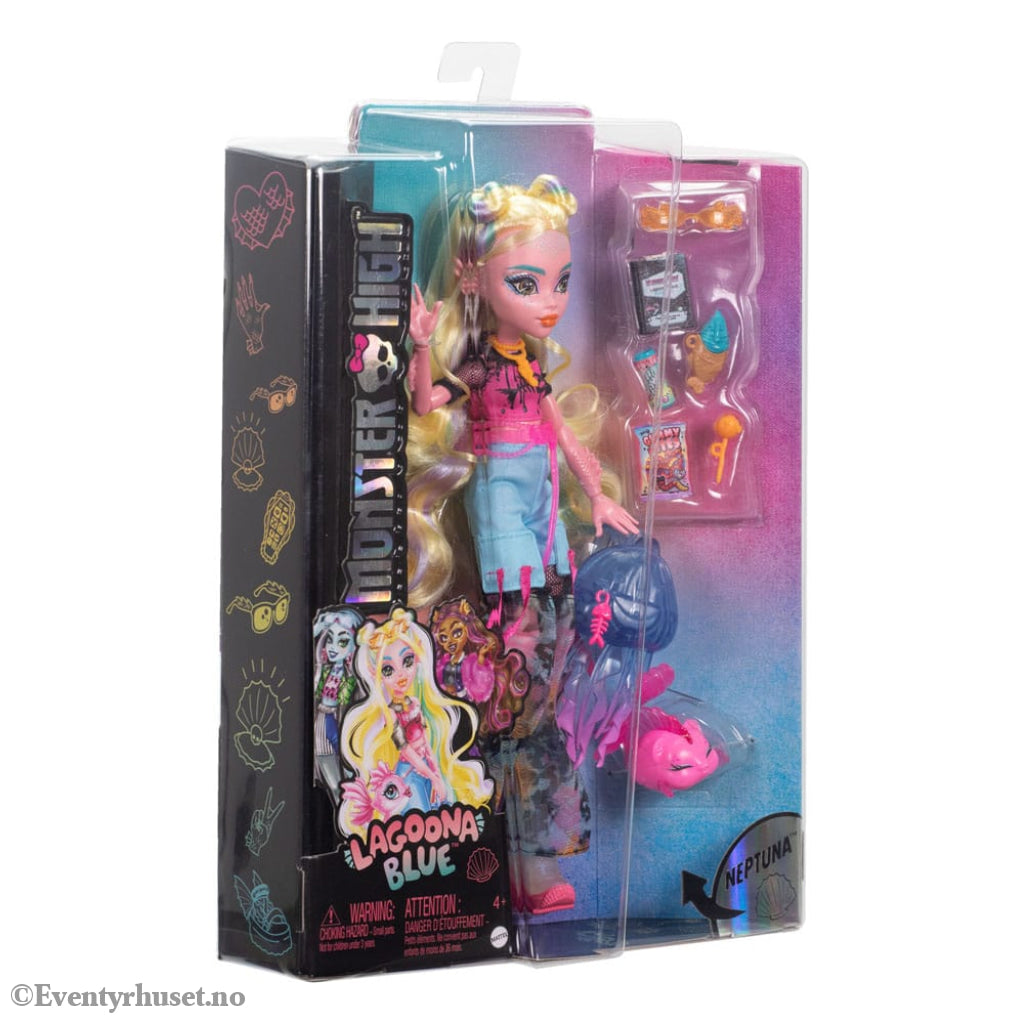 Monster High Lagoona Blue doll looks ready to rule the high seas in her faboolously trendy outfit! She comes with her pet piranha Neptuna, as well as accessories pulled from the ocean's depths.