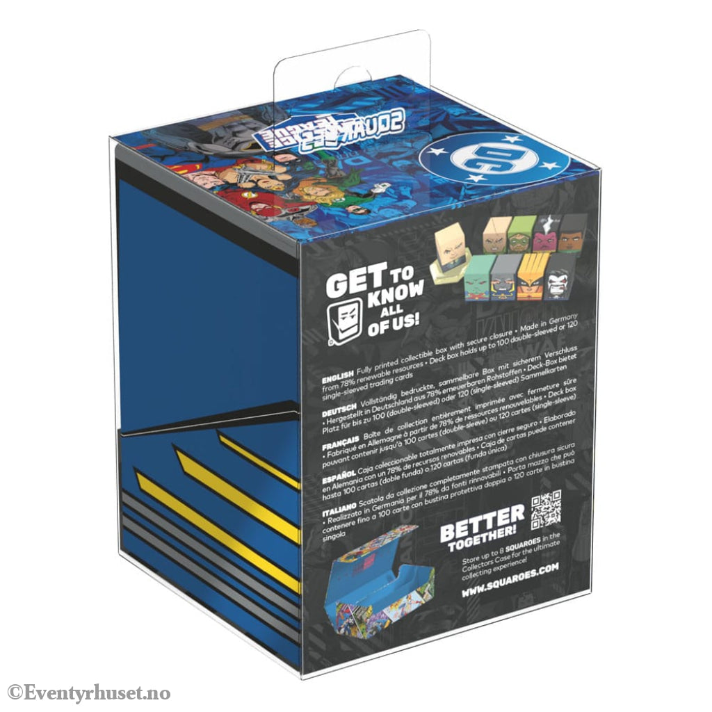 Collectible box for storing TCG decks, tabletop gaming accessories, and/or collectibles. The Darkseid™ Squaroe from the DC Justice League™ edition holds up to 100 cards in double protective sleeves if used as a deck box. Squaroes are made from 78% renewable recources.