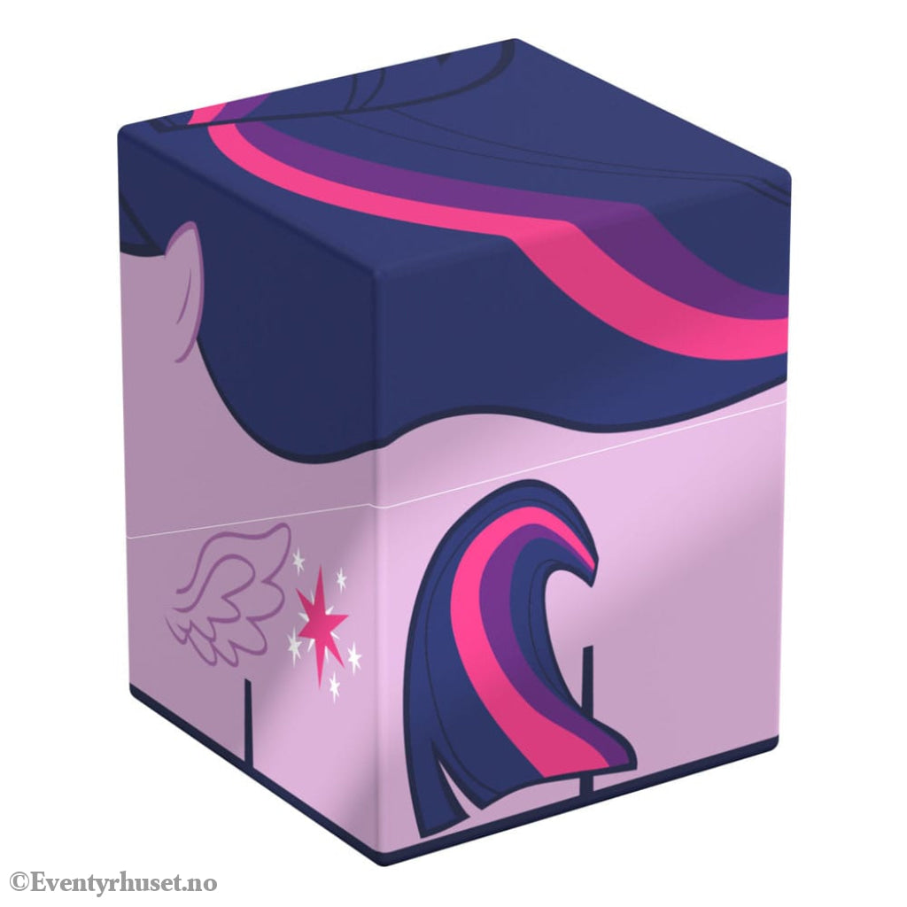 Collectible box for storing TCG decks, tabletop gaming accessories, and/or collectibles. The Twilight Sparkle Squaroe from the My Little Pony "Friendship is Magic" edition holds up to 100 cards in double protective sleeves if used as a deck box. Squaroes are made from 78% renewable recources.
