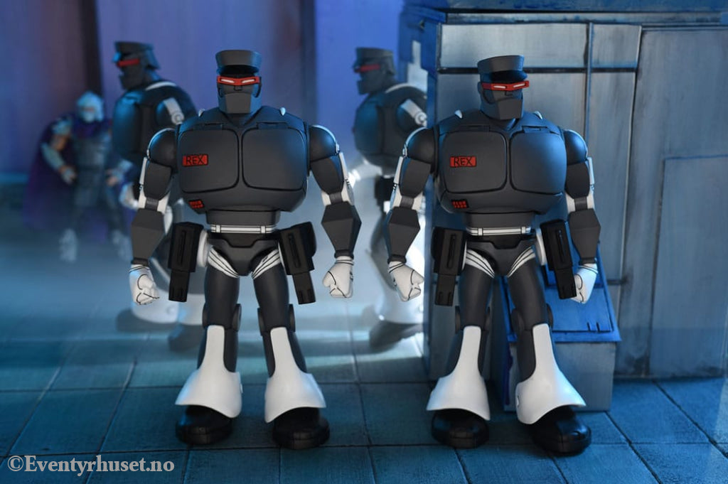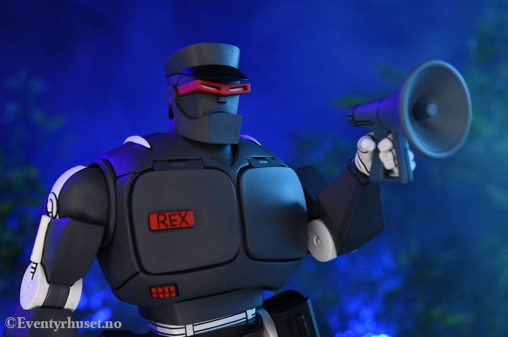 Based on the classic 1980s Teenage Mutant Ninja Turtles cartoon series! The first robot policeman known as "Robot Enforcement Experiment" now has a diabolical duplicate. Shredder's army of Evil Rex-1 robots is here to take control of your toy shelf and terminate the Turtles once and for all! This 7-inch scale action figure is hardwired for havoc. Comes in collector-friendly VHS tribute style packaging.