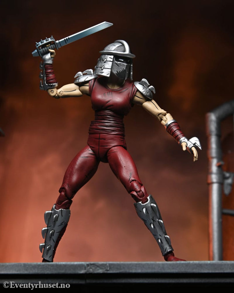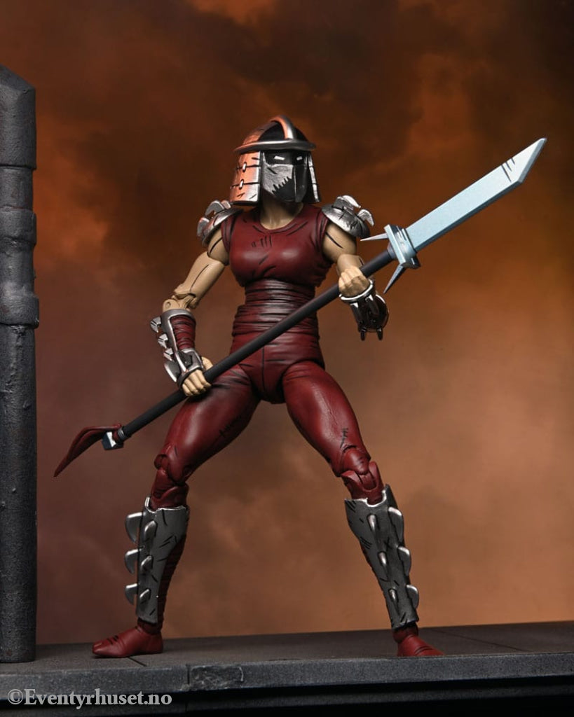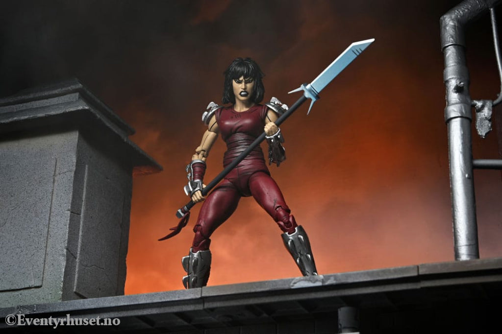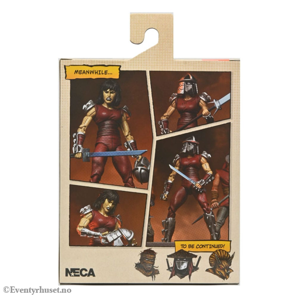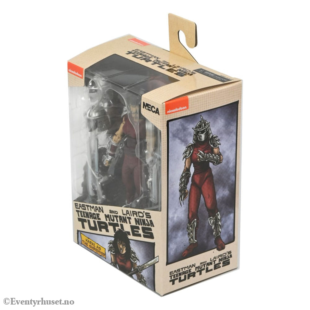 Based on the original Eastman & Laird Teenage Mutant Ninja Turtles comic books from Mirage Studios! As seen in the "City at War" storyline, Karai, the new leader of the Foot Clan, is both a fearsome foe and uneasy ally to the Turtles. This 7-inch scale NECA action figure includes masked and unmasked heads, extra hands, and deadly ninja weapons! Comes in collector-friendly packaging with original box art by Kevin Eastman.